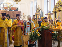 Правящему архиерею сослужили наместник монастыря архимандрит Силуан (Макей), братия обители и гости в священном сане.